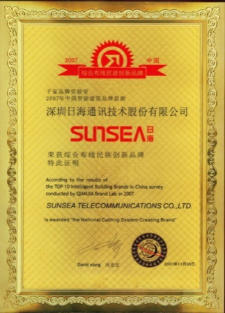 2007年11月29日~30日,南宫28智能综合布线受邀前往上海光大会展中心酒店,参加由千家网筹办的“2007年第八届中国国际建筑智能化峰会暨颁奖典礼”,取得了“布线民族创新品牌”特别奖项。